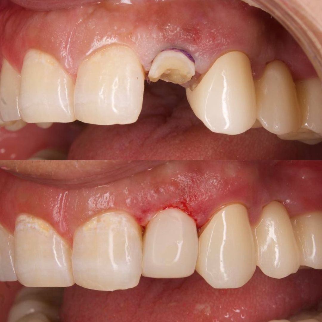 Реальный случай из нашей практики: передний зуб разрушен практически полностью. Многие клиники предложили бы удаление, но мы знаем — даже такой зуб можно спасти!